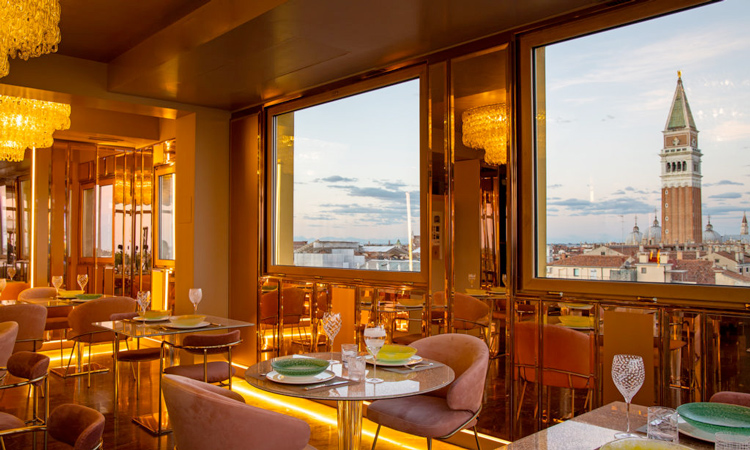 Also looking out across the water on the ground floor, the De Pisis restaurant serves contemporary Italian cuisine. A partnership with Chef Ribaldone brings innovation to this classic restaurant on the lagoon. Mixing local ingredients with a dash of Mediterranean and International influences, guests have a fine dining experience. The buffet at breakfast is served in De Pisis or, for premium guests, in the fantastic top-floor Settimo Cielo Rooftop Restaurant—Seventh Heaven—still the highest rooftop restaurant in Venice, with spectacular views over the city. Settimo Cielo, recently renovated in the name of absolute elegance and refined design, awaits to delight you with the culinary creations of the charismatic starred chef Cristiano Tomei. In warmer months, the Settimo Cielo terrace serves as a cocktail bar, and can be hired for private events.