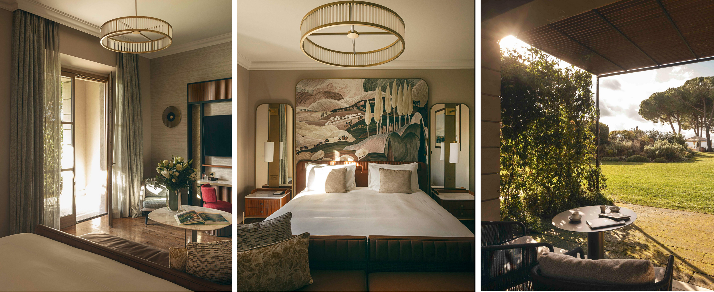 Accommodation spans contemporary rooms in the main hotel (many with sweeping terrace views), traditional suites in the restored tobacco warehouse, private farmhouses, or ultra-luxe villas with heated pools—ideal for families or groups seeking space without sacrificing service.