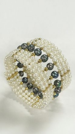 The generous 38mm width offers bold statement presence without overwhelming, while the adjustable fit guarantees comfort and a custom feel for any wrist size—perfect for layering over silk sleeves or wearing solo for understated drama. Whether you’re dressing up for a gala, adding quiet luxury to office tailoring, or elevating a casual cashmere look, this versatile black and white pearl cuff transitions effortlessly from day to night. Its high-contrast design exudes effortless sophistication: the creamy white pearls illuminate with soft radiance, while the deep, iridescent black pearls add mysterious depth and edge—making it a piece she’ll treasure and reach for endlessly.