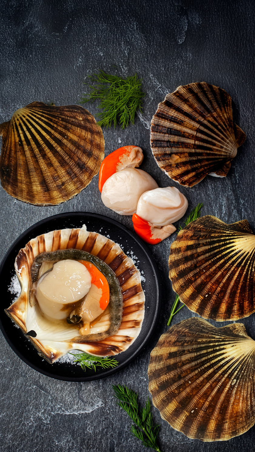 So we are delighted to offer our Members the very finest of the season: jumbo king scallops (the largest grade available), hand-dived by a small fleet of veteran divers working the cold, clear waters of Loch Fyne. No dredging, no damage to the seabed, and, crucially, no compromise on size or flavour.