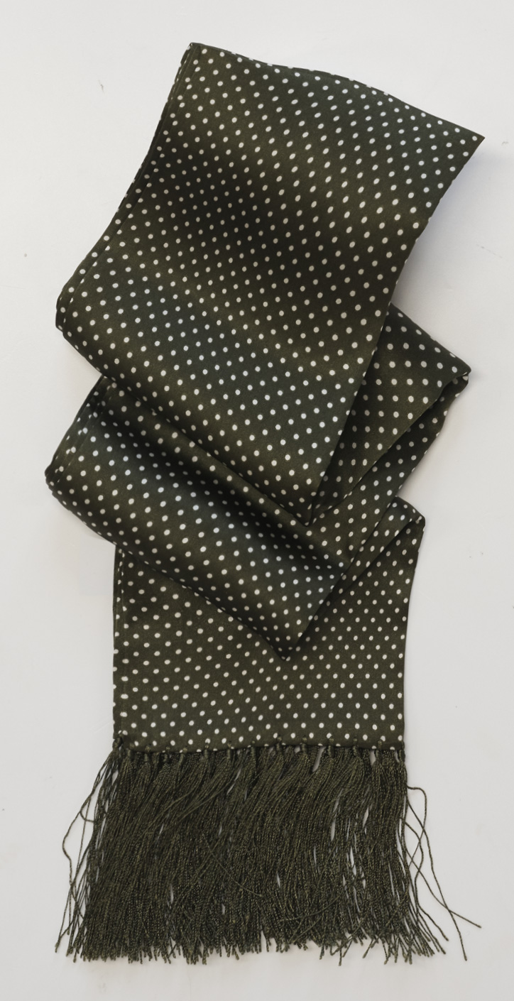Tootal silk scarf: best price for the famous original British racing green with antique white polka dots aviator scarf: beautifully made, pure silk, a design classic