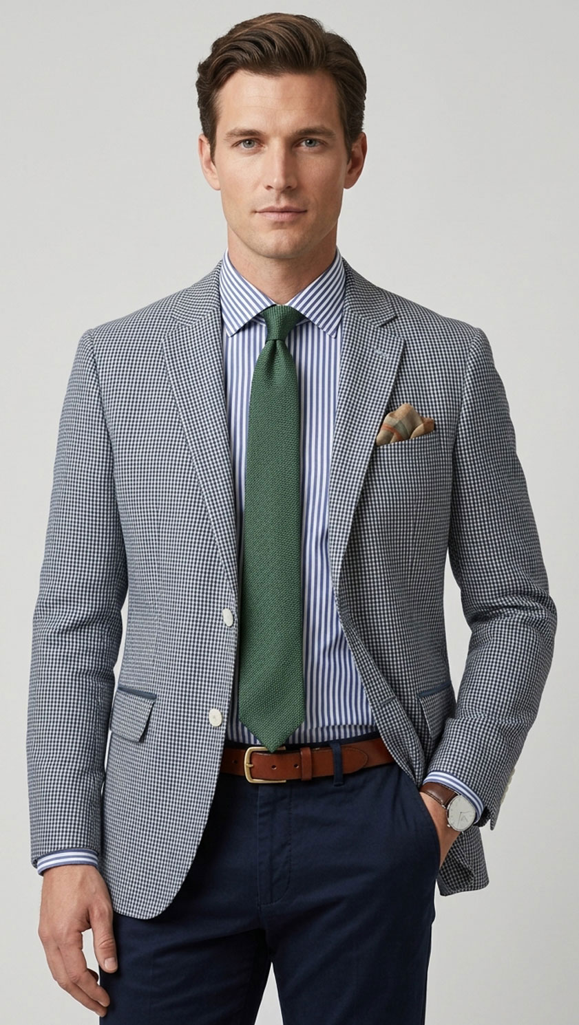 Wear with a crisp striped or plain shirt and silk tie for weddings and races, or pair with chinos and an open-collar shirt for garden parties and country club days. This refined check jacket is the missing piece many men search for — smart enough for formal summer events yet relaxed enough for everyday elegance.