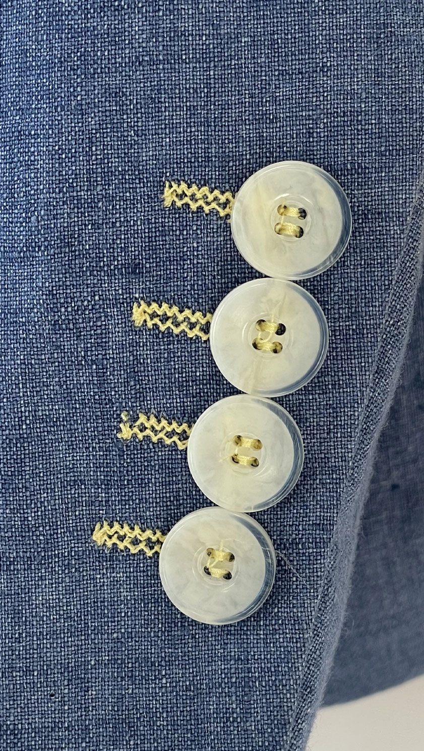 - Premium 100% linen in a soft Blue Melange finish — naturally breathable with wonderful natural texture
