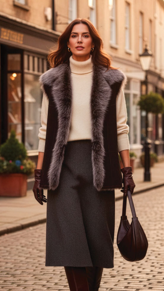 Reversible Toscana shearling gilet, the longest, silkiest pelts falling like liquid winter decadence over ivory cashmere. Wear it over city blazers in SW1 or jodhpurs in the shires; suddenly every other coat feels underdressed. Toscana is the highest quality sheepskin in the world, and this sumptuously soft Toscana shearling gilet makes the most of its fabulous qualities of beauty, lightness and warmth.