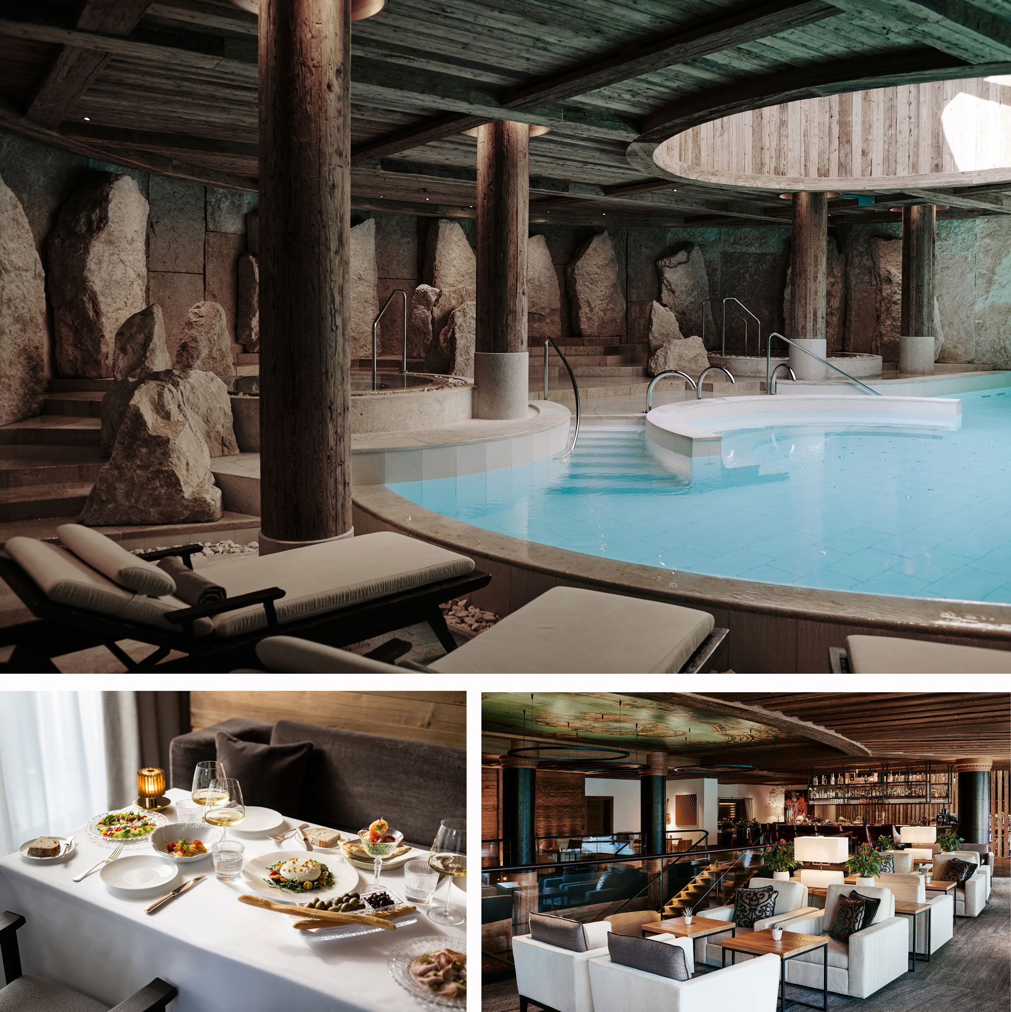 Dining is equally assured: the Michelin-starred Sommet serves refined French-Swiss cuisine with flawless precision, while Megu brings authentic Japanese artistry to the Alps, and the more relaxed Stübli offers hearty fondue and raclette in cosy pine-panelled surroundings. The wine cellar—one of Switzerland’s finest—ensures perfect pairings, whether a mature Bordeaux after a day’s skiing or a crisp local Fendant on the sun terrace.