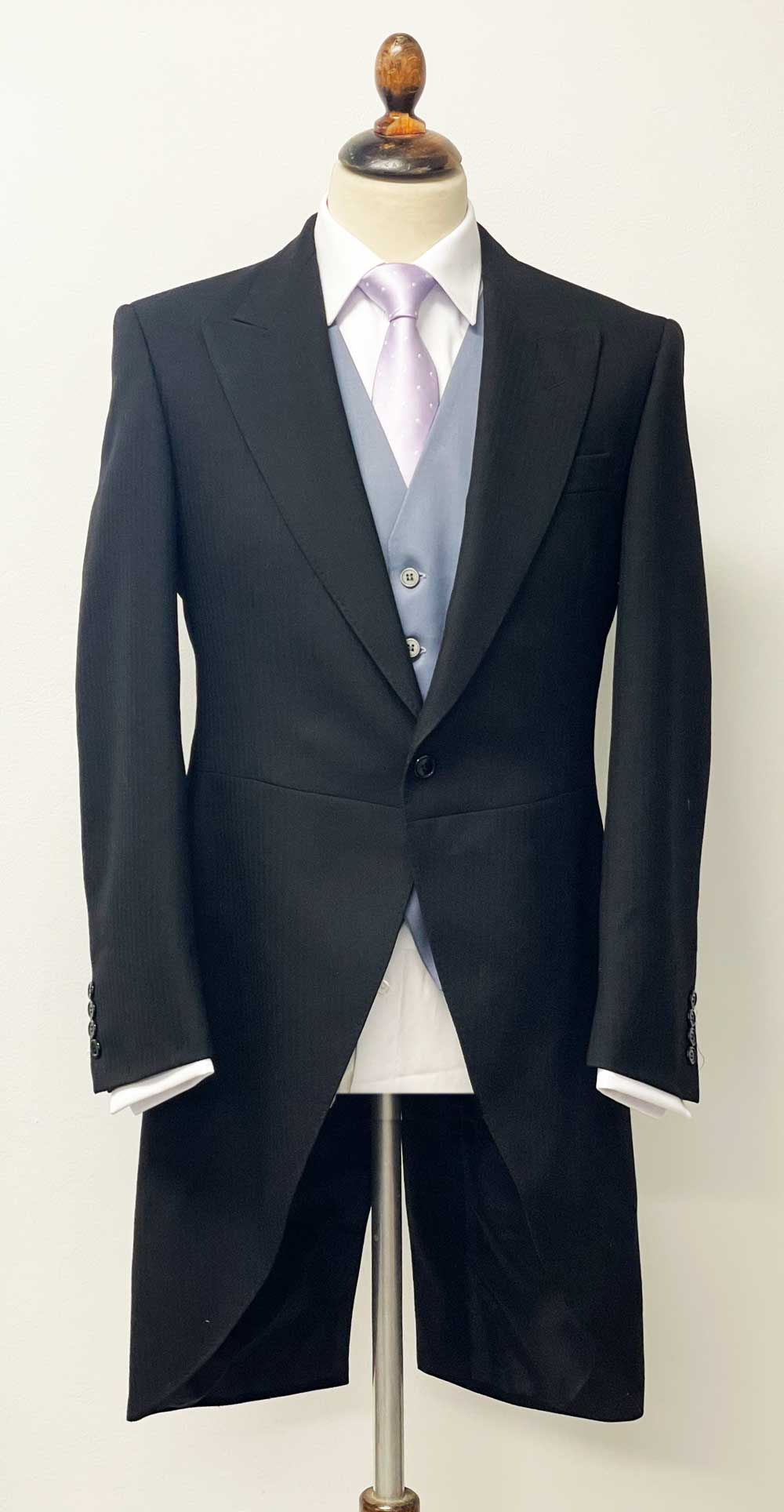 The perfect, well-cut, pure wool gentleman’s morning tailcoat for all formal events: a snip for our Members