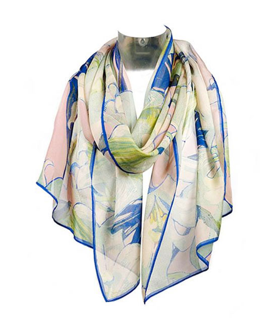 White Lilies Silk Chiffon: fine art by Mabel Royds creates the perfect summer stole