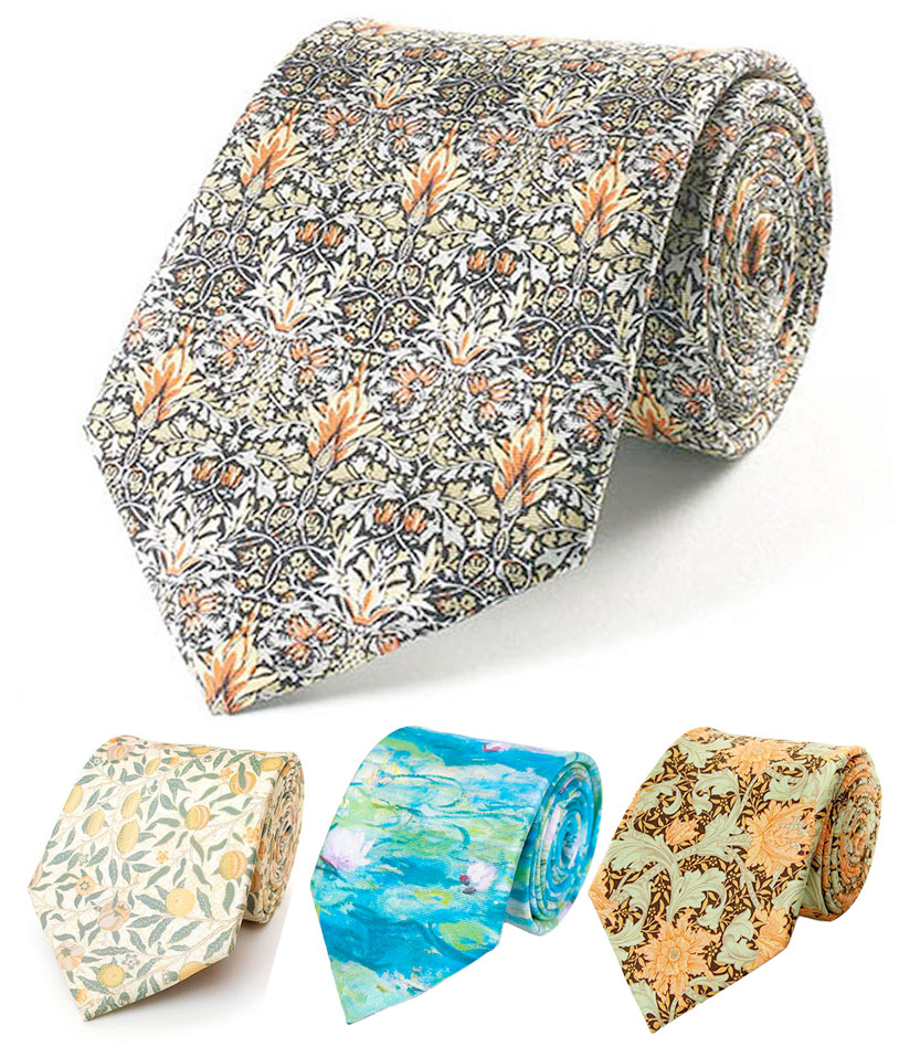A man needs a new tie for the new season—and our stylish and fresh new summer ties are from the fine art collection of silk tie specialists Fox & Chave of England. They work with art galleries and museums around the world to create fine silk designs inspired by fine art masterpieces. Here are four beautiful patterns inspired by Monet and Morris: click here to see the latest ties!