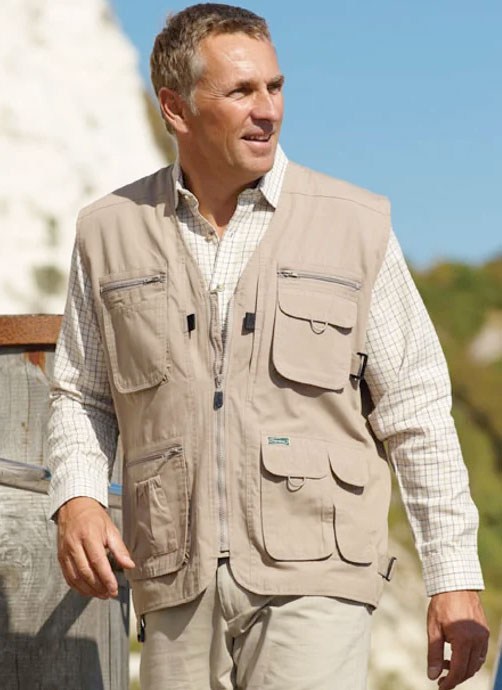 Whether you are fishing, walking the dogs, gardening or doing a spot of fencing, riding out or showing, sailing, on safari or a photographic assignment, this lightweight waistcoat and body-warmer keeps you looking smart while storing everything you need, just where you can find it, and without weighing you down. It also keeps your back warm . And at the Club price of a mere £16.95 including delivery to your door it’s a real El Snippo. Stone or olive. Sizes S to 3XL.
