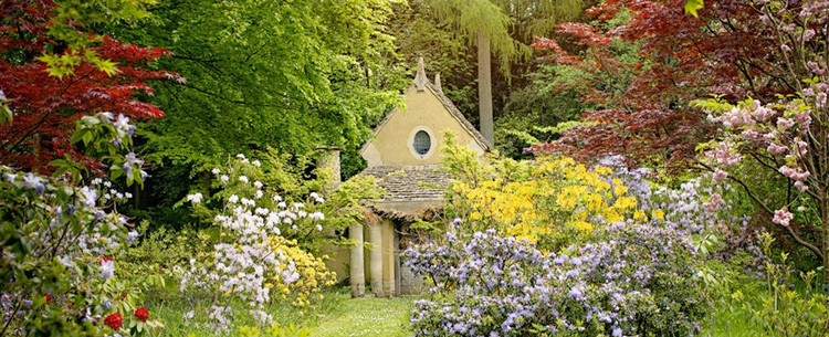 Highgrove, as with all great gardens, does not reveal its charms all at once. Each garden room contains its own private pleasures, then takes the viewer on to the next scene, with the House sometimes the focus, at others glimpsed through the trees. Close at hand are the Terrace Garden, the Cottage Garden, Thyme Walk, Lily Pool Garden, Sundial Garden and Chelsea award-winning Carpet Garden. Farther afield, the Walled Garden, the Model Fruit Garden, Cutting Garden, Azalea Walk, Lavender Orchard, Southern Hemisphere Garden, Woodland Garden and Arboretum. Among the characteristics of these gardens there is humour: as in the Ego Garden. And pathos: the memorial to Her Majesty The Queen Mother. Strong architectural features: the Temple of Worthies, The Sanctuary (which is indeed treated as a sanctuary by the King) and the Wall of Gifts. Some eccentricities: The Stumpery, for one. National treasures and rarities abound. Highgrove hosts national collections of beech trees and hostas, among others.